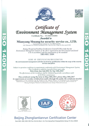 環(huán)境管理體系認證證書(shū)